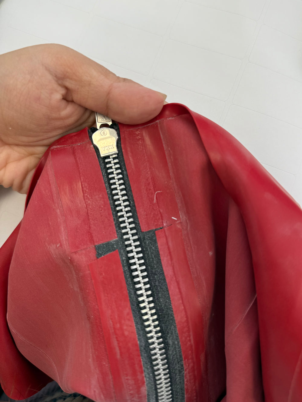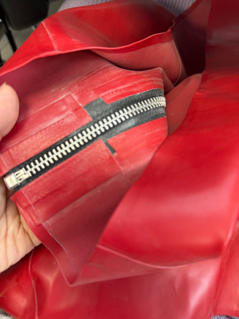 Clearance - Silver Zipped Latex/Rubber Dress in Red- Size M