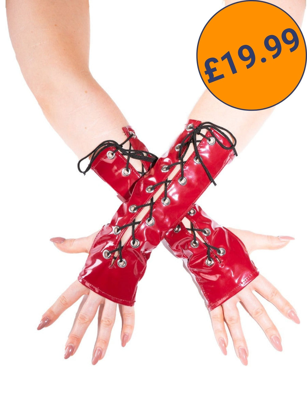 Secret Sale - PVC Gauntlet Gloves In Burgundy Or Black