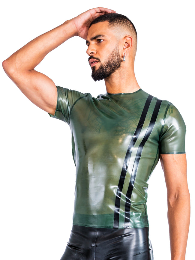 Try our Striped Green Khaki top for those military-Oppenheimer vibes, or flip the script with our Warrior sleeveless top for some intense leather Kenergy, inspired by the biggest hits of the year. If you're after something a little more typical of the Halloween season, you can't go wrong with our classic black latex shirt for a suave vampire look.