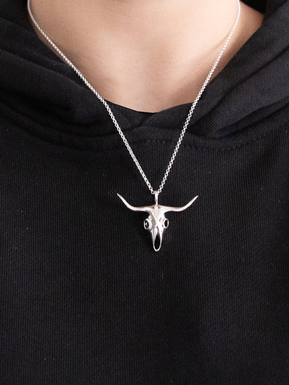 Buba Silver Buffalo Skull Silver Pendant & Necklace Chain