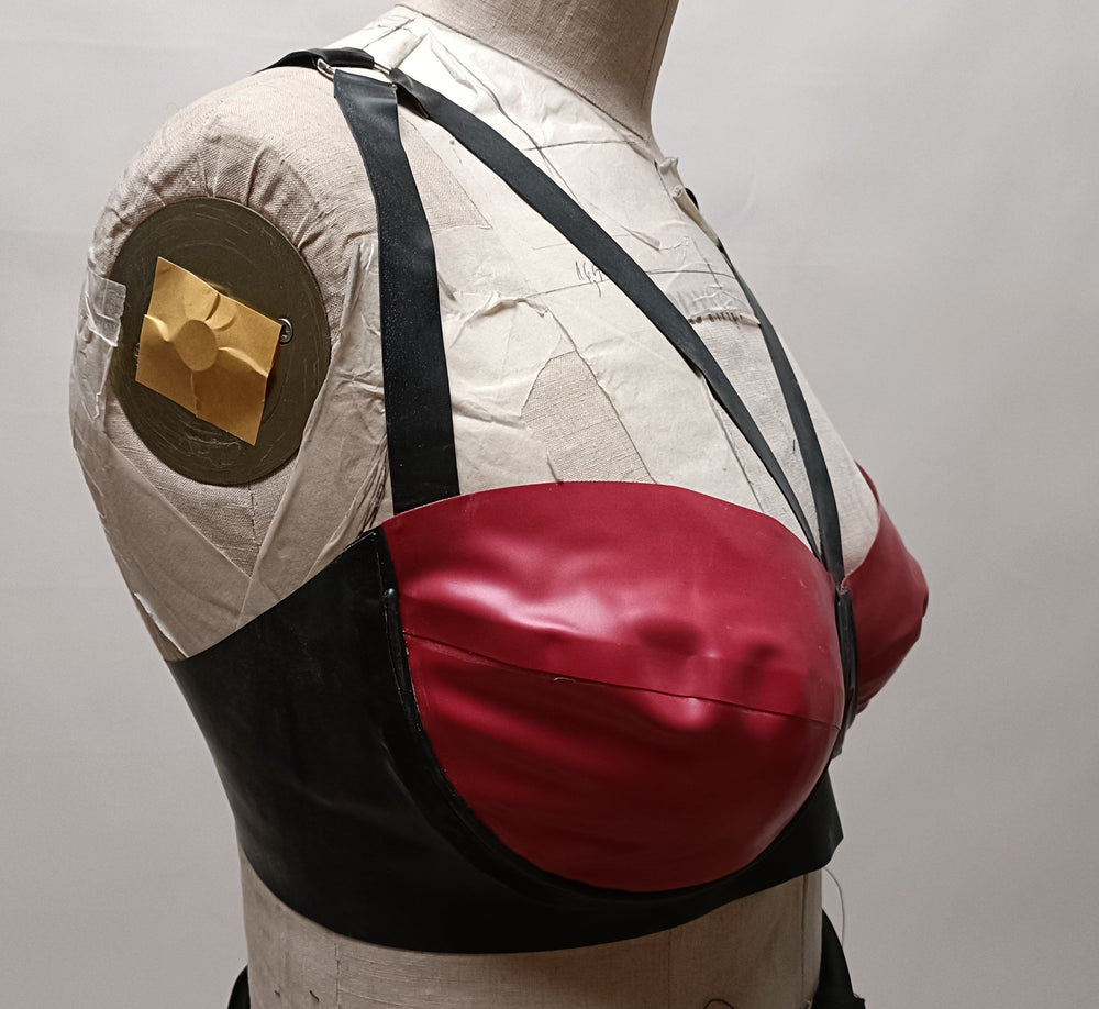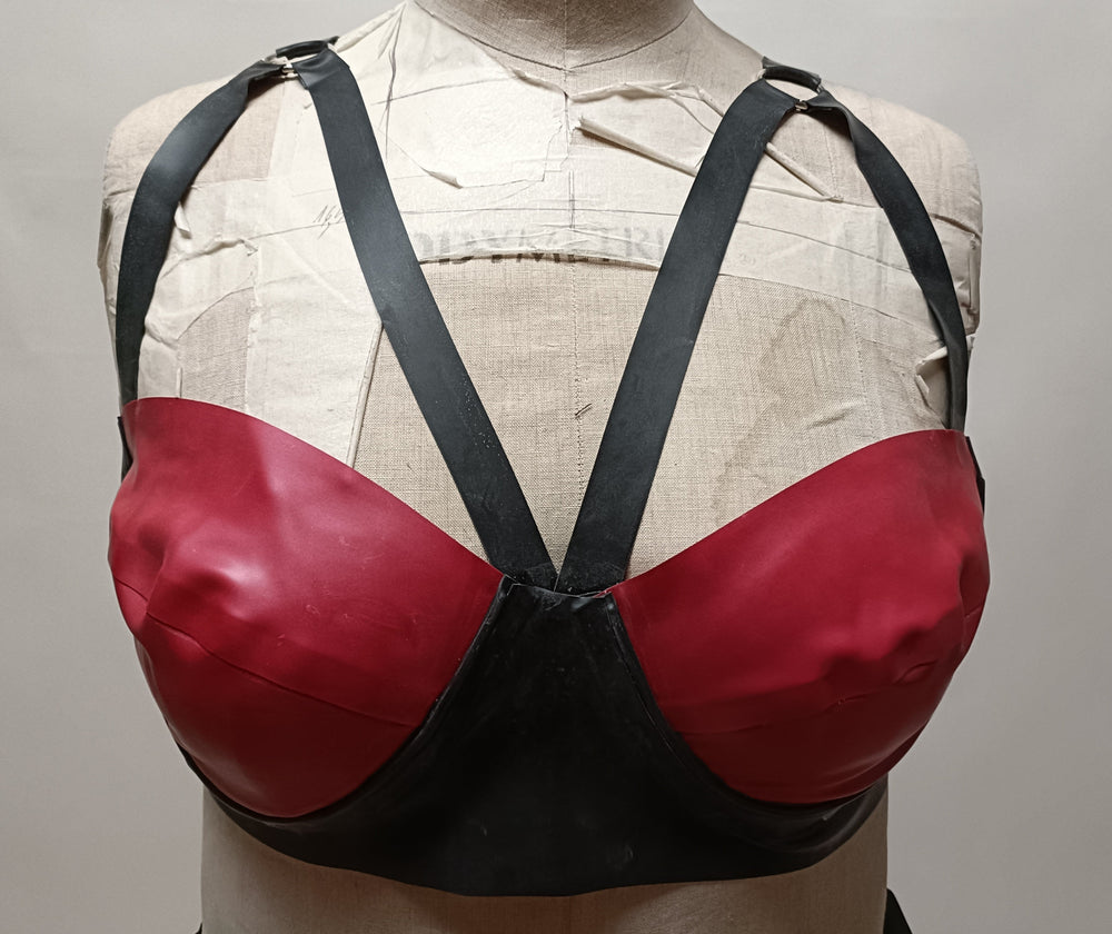 Clearance - Starbust Latex/Rubber Bra Black & Red, Size L