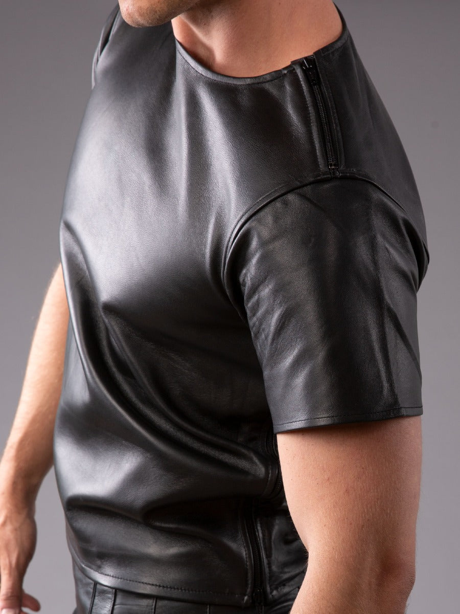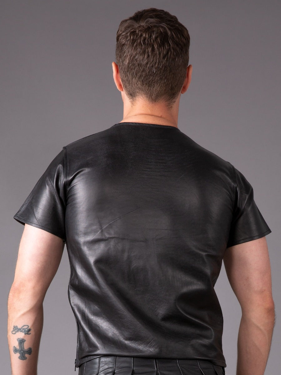 Round Neck Premium Leather T-Shirt - Black - Honour Clothing