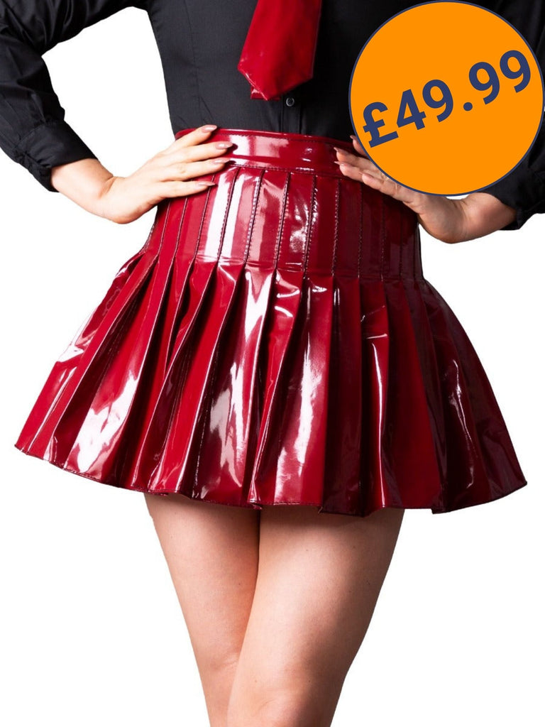 Pleated PVC Burgundy Skirt - Honour Clothing